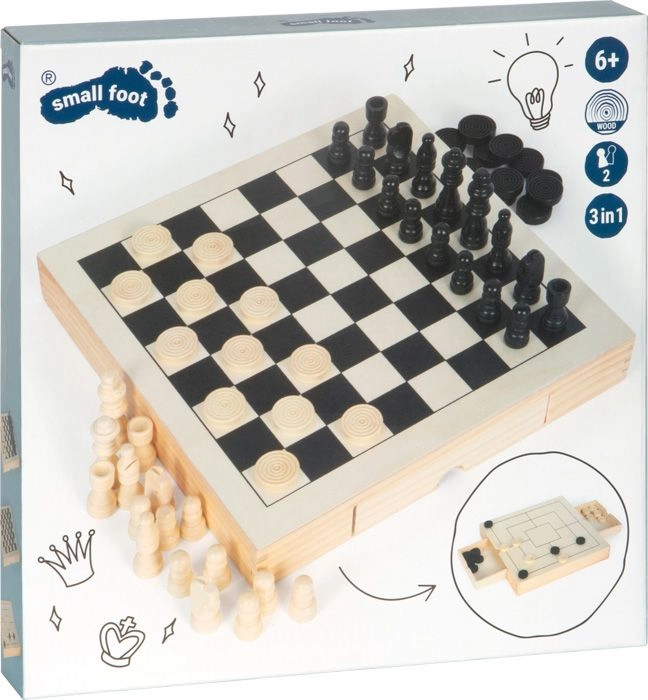 Šis elegantiškas medinis rinkinys siūlo tris klasikinius strateginius žaidimus viename: šachmatus, damą ir malūną. Dėl kompaktiškų matmenų 28 × 28 × 4 cm ir integruotų stalčiukų jis idealiai tinka kelionėms ir namams. Kiekvienas elementas turi savo vietą, tad niekas nepasimes ir žaidimą galima pradėti per kelias sekundes.