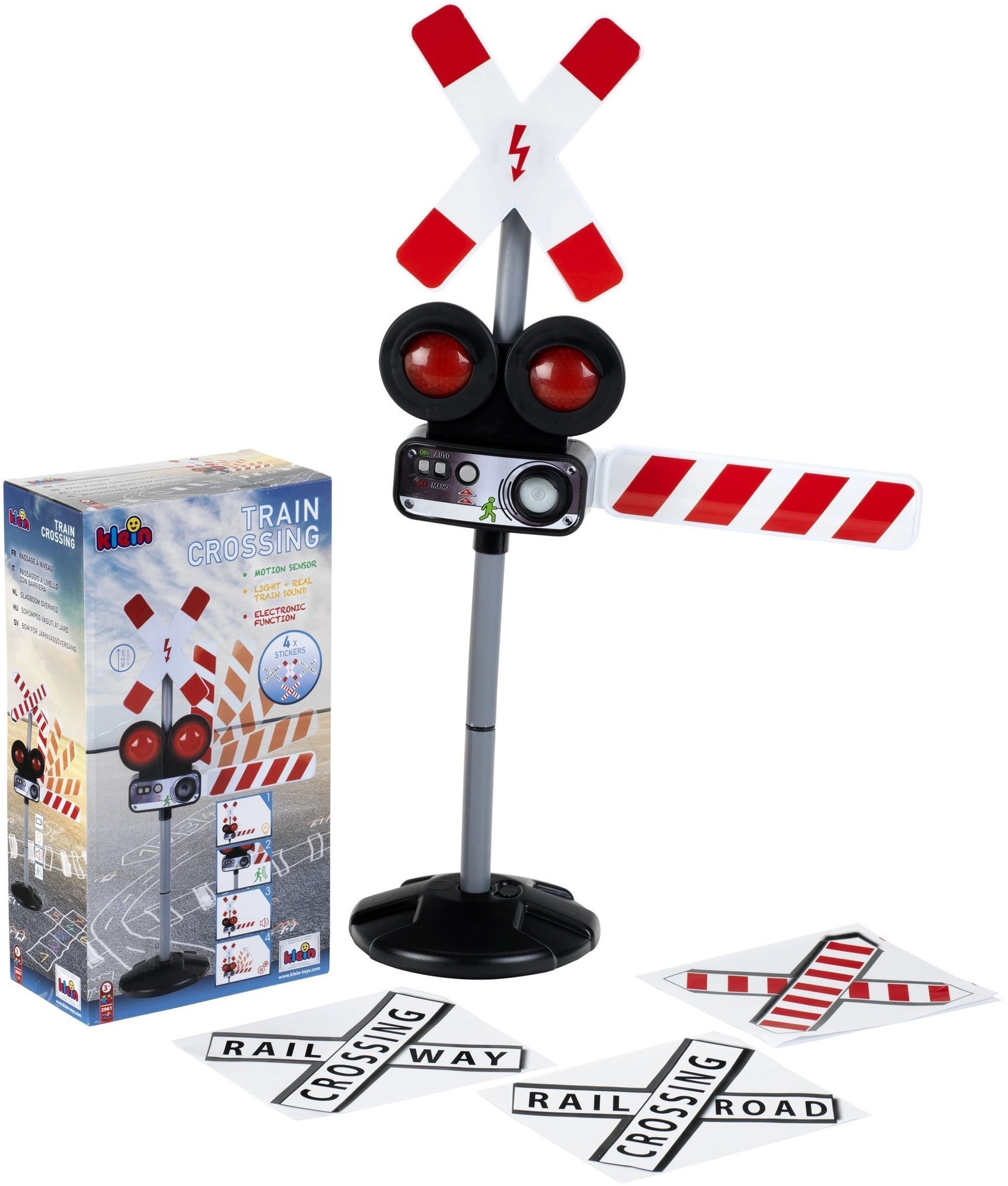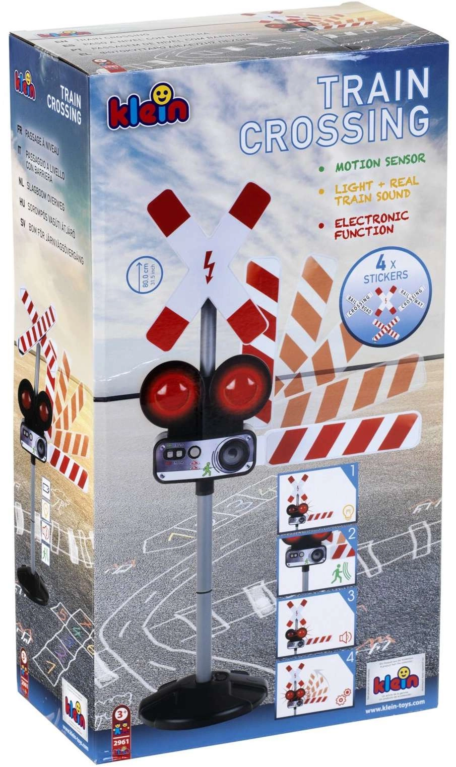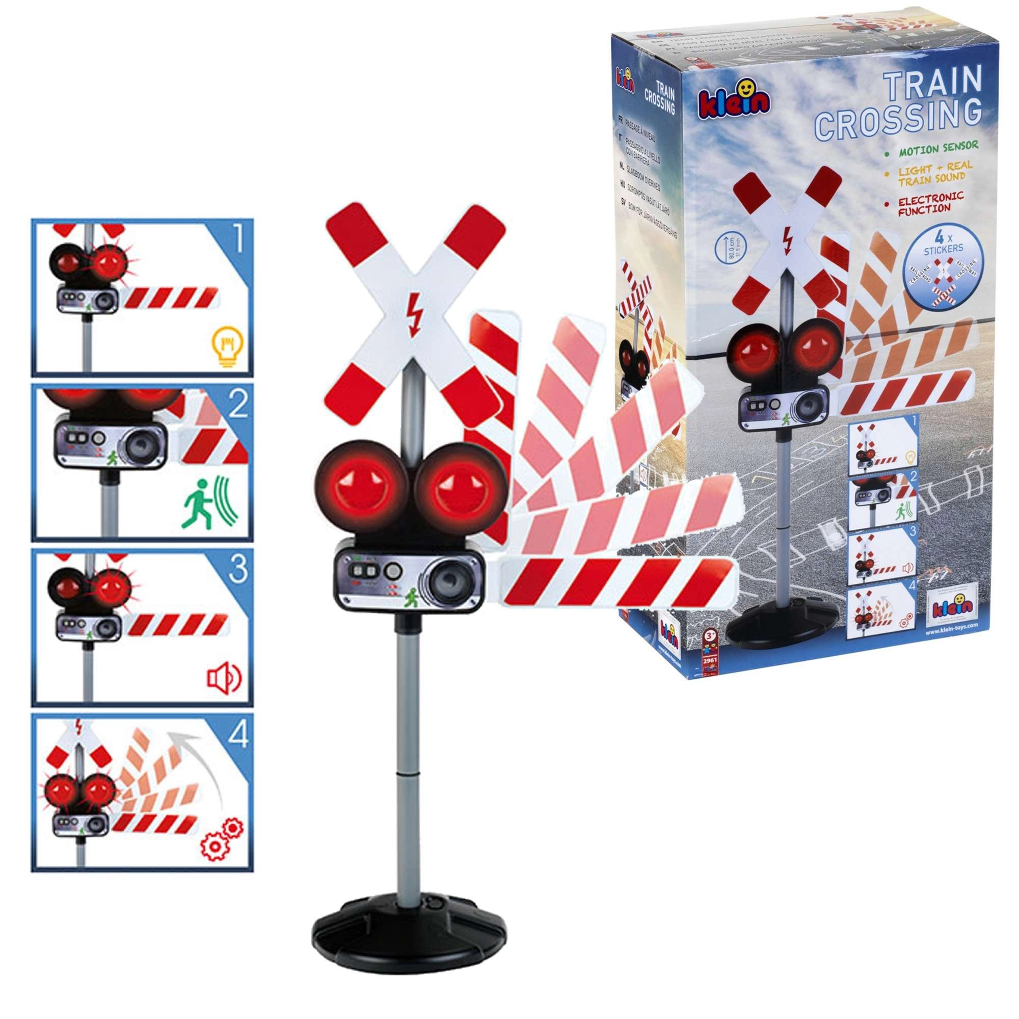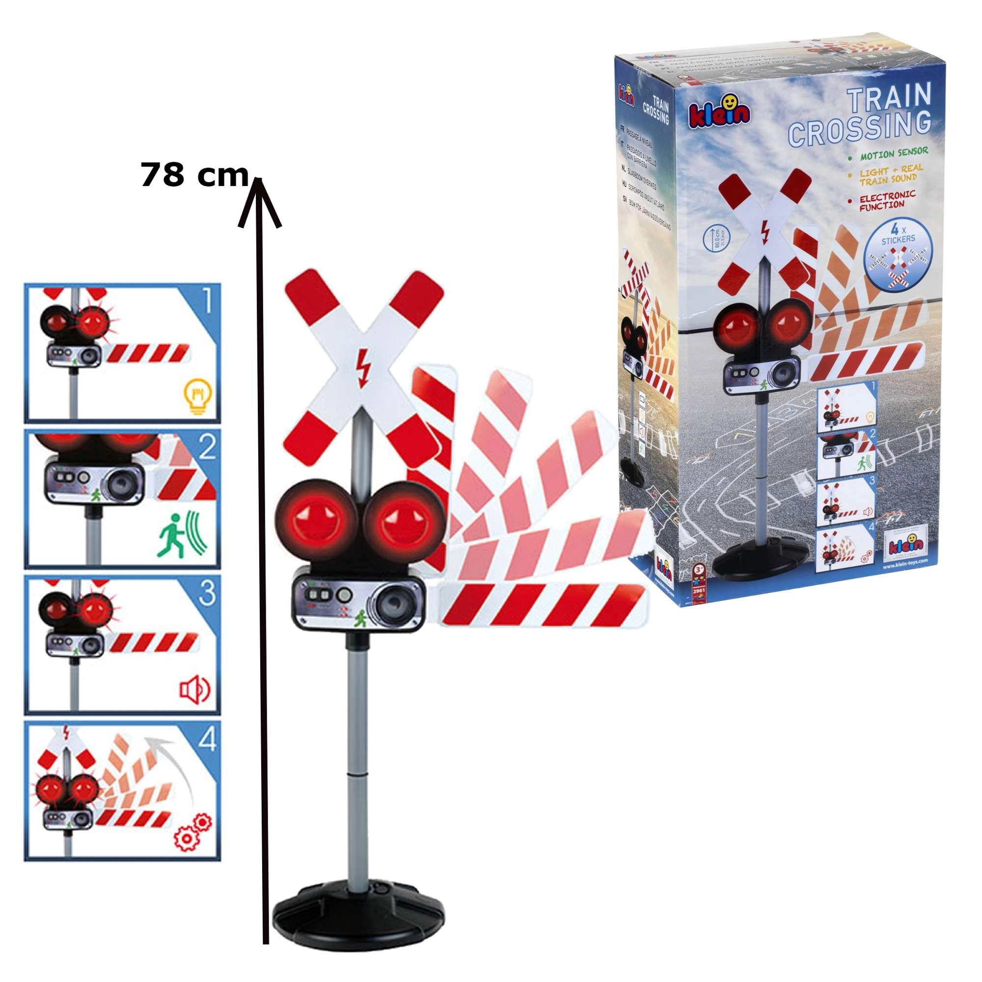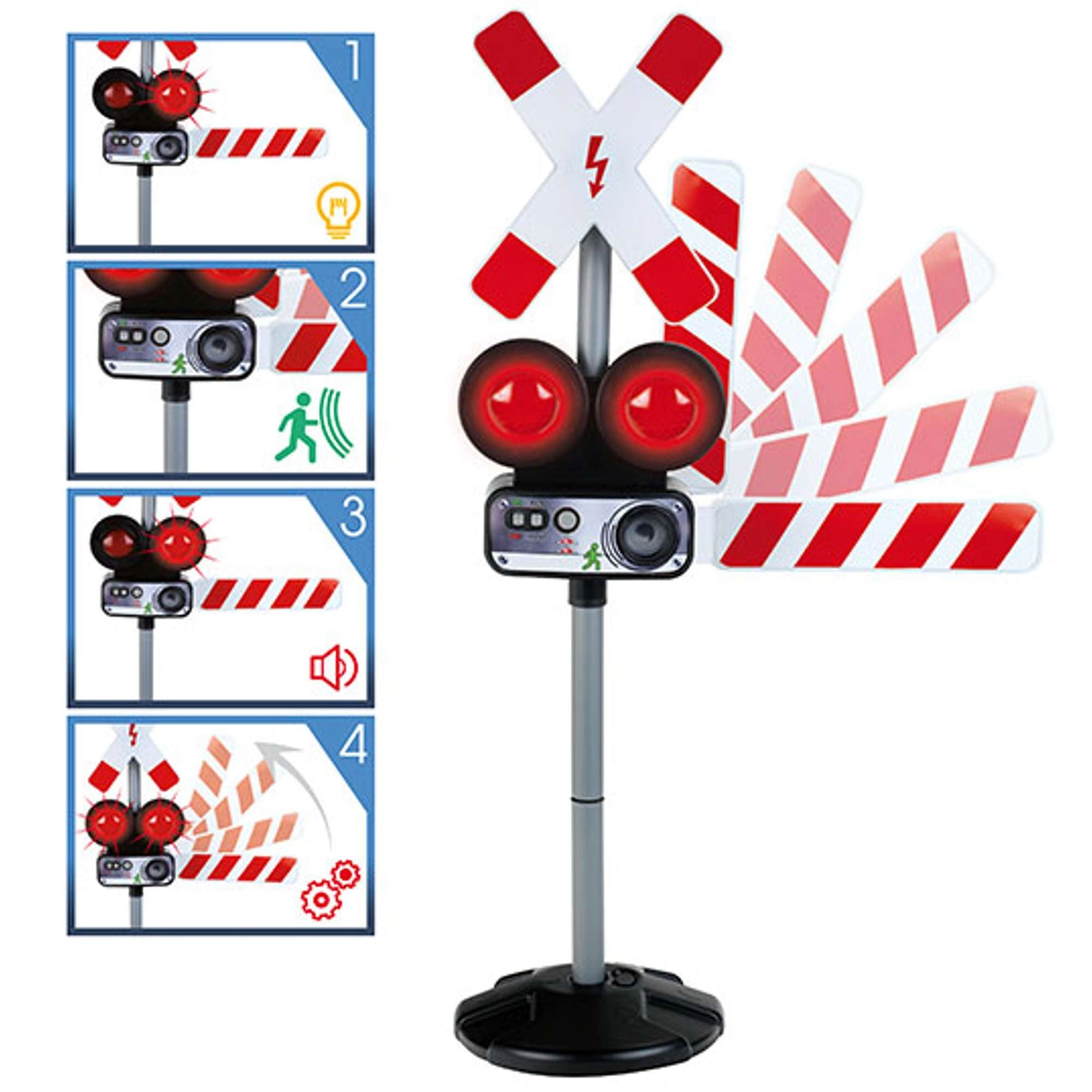 Dvi raudonos mirksinčios šviesos ir autentiški traukinio garsai kuria tikrą geležinkelio pervažos atmosferą, kuri akimirksniu įtraukia vaikus į žaidimą.