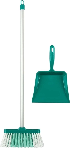 Ilga šluotos kotas ir minkšti šereliai leidžia vaikams saugiai mėgdžioti šlavimą. Šepetėlis su semtuvėliu padeda „surinkti“ trupinius ir dulkes.