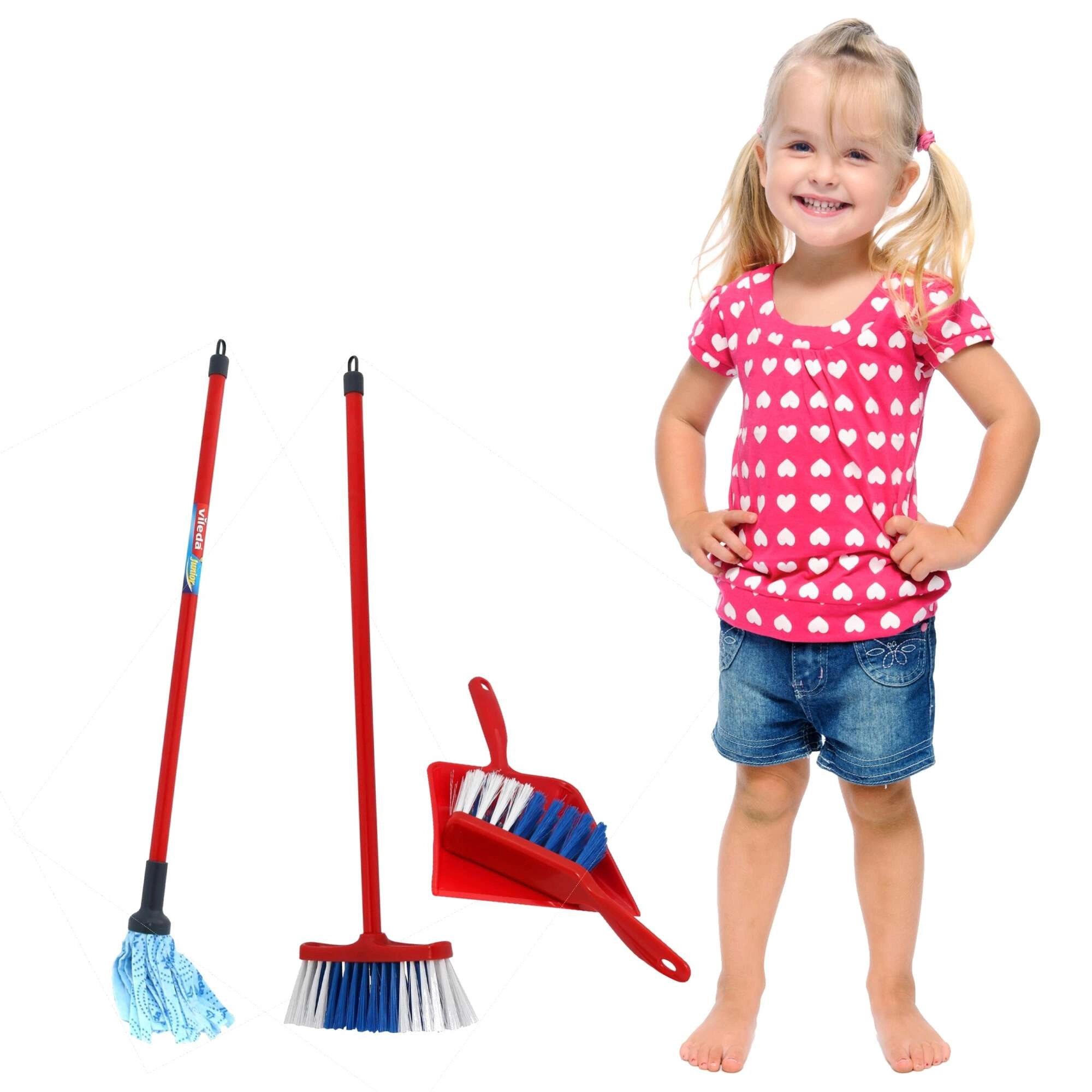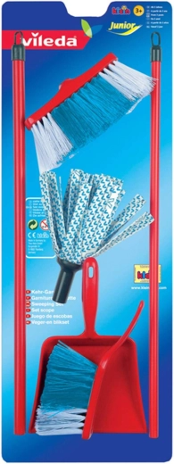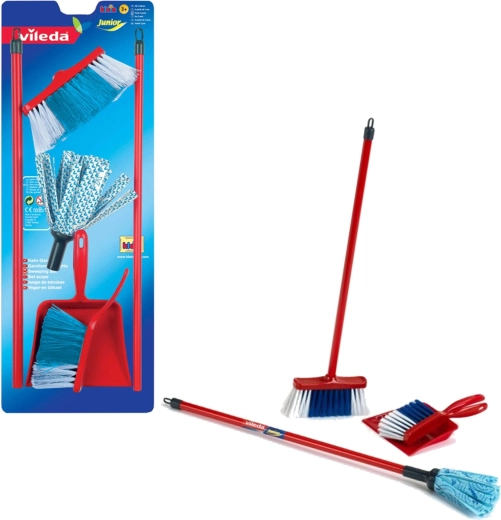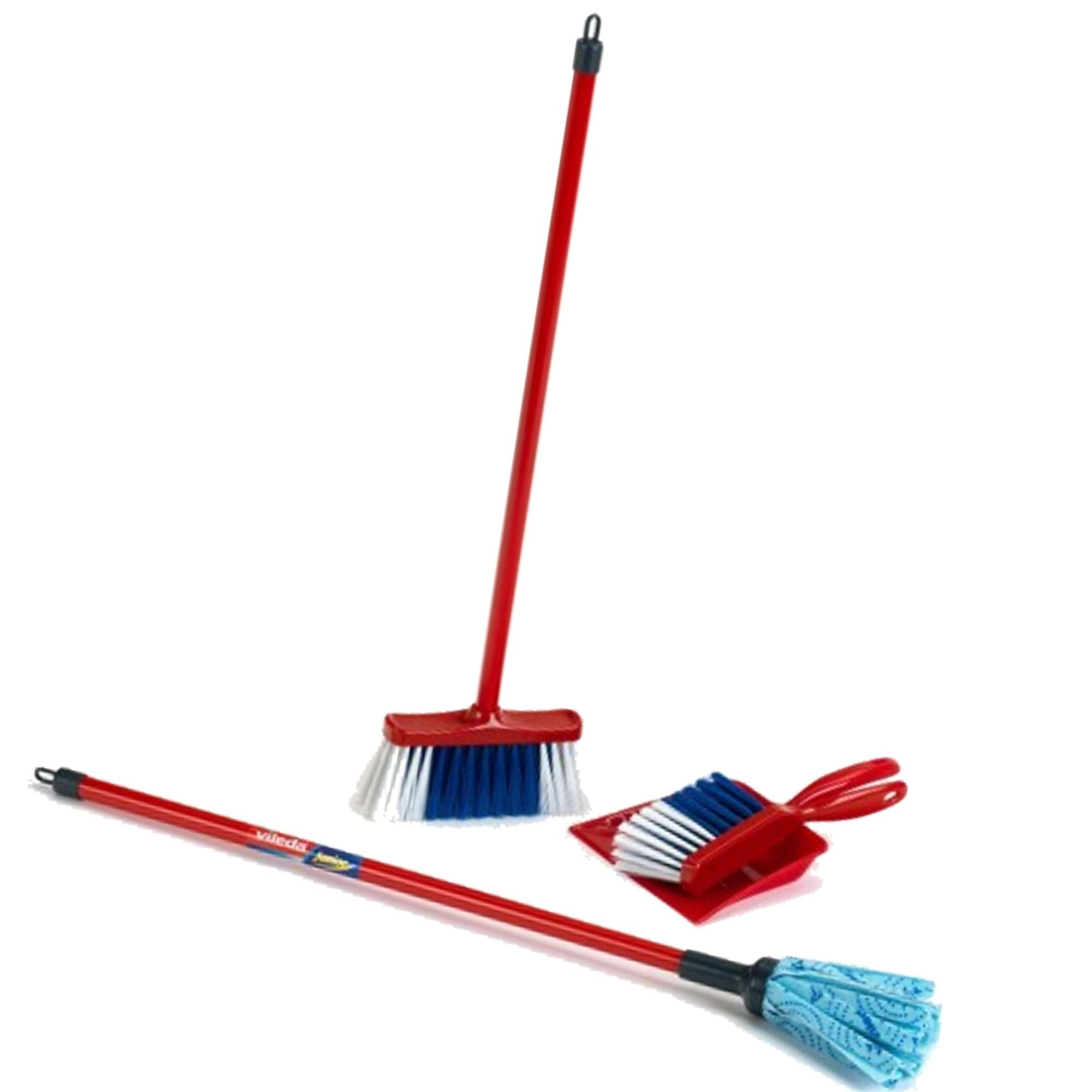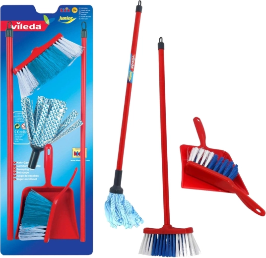 Realistiškas vaikiškas valymo rinkinys pagal Vileda licenciją iš KLEIN pradžiugins mažus pagalbininkus, mėgstančius mėgdžioti suaugusiuosius. Rinkinyje yra mopas, šluota, semėtis ir rankinis šepetėlis lengvo svorio, vaikams pritaikytų matmenų. Mažas svoris, tvirtas pagaminimas ir tikroviškas tikrų valymo priemonių dizainas skatina ir žaidimą, ir tvarkos mokymąsi.