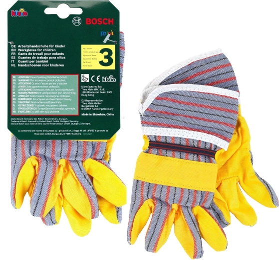 Puikiai papildo kitus BOSCH mini serijos rinkinius – nuo gręžtuvų ir sodo įrankių iki statybinių priedų. Pirštinės skirtos žaidimams ir kostiumams, motyvuoja vaikus mėgdžioti suaugusiuosius atliekant lengvus namų ir lauko darbus.