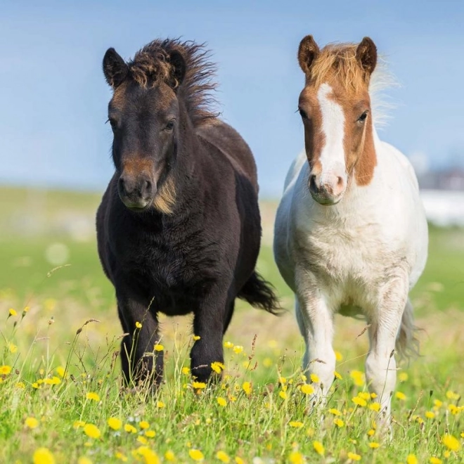 Detalūs arklių atvaizdai žydinčiose pievose ir ganyklose lavina vaizduotę ir kuria malonią, raminančią dėliojimo patirtį.