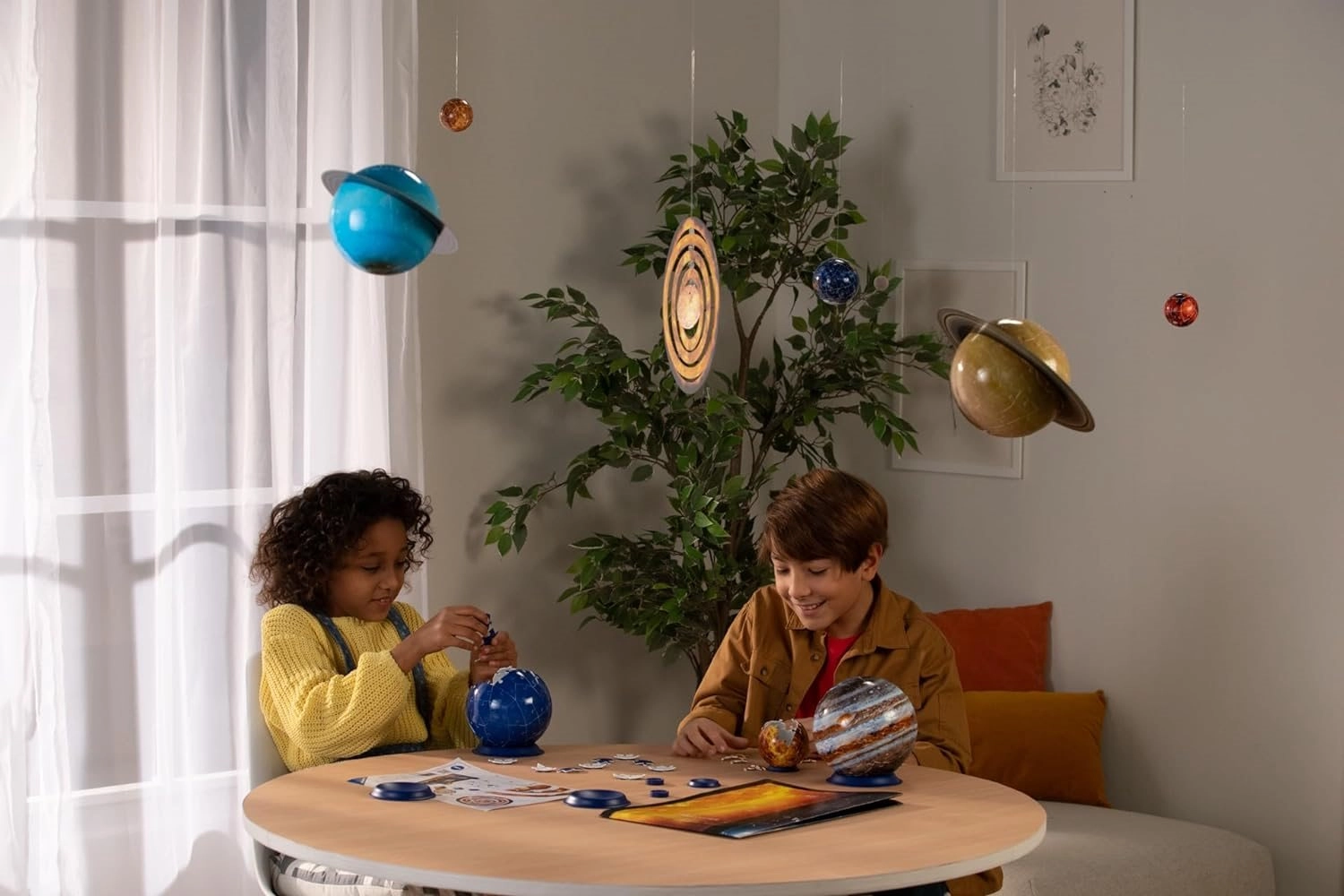 Atraskite mūsų Saulės sistemos grožį interaktyvia forma. Rinkinyje yra 8 skirtingų skersmenų 3D puzzleball planetos, dviejų planetų žiedai, iš kieto kartono pagaminta Saulė ir iš putplasčio polistireno pagamintas Mėnulis. Kiekviena detalė tiksliai suformuota, o surinkus susidaro stabilūs ir lygūs rutuliai be klijų.