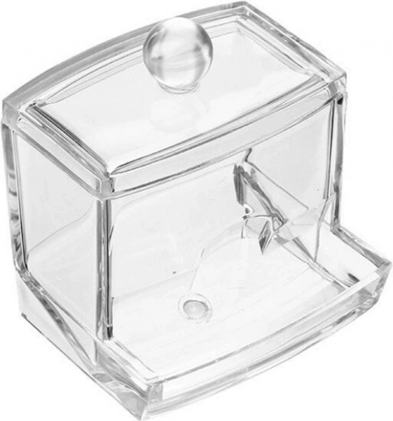 Laikykite savo vonios kambarį tvarkingą ir higienišką. Šis kompaktiškas vatos krapštukų dozatorius pagamintas iš kokybiško, netoksiško PMMA akrilo, atsparaus įbrėžimams ir lengvai valomo. Skaidrus korpusas leidžia akimirksniu patikrinti atsargų kiekį.