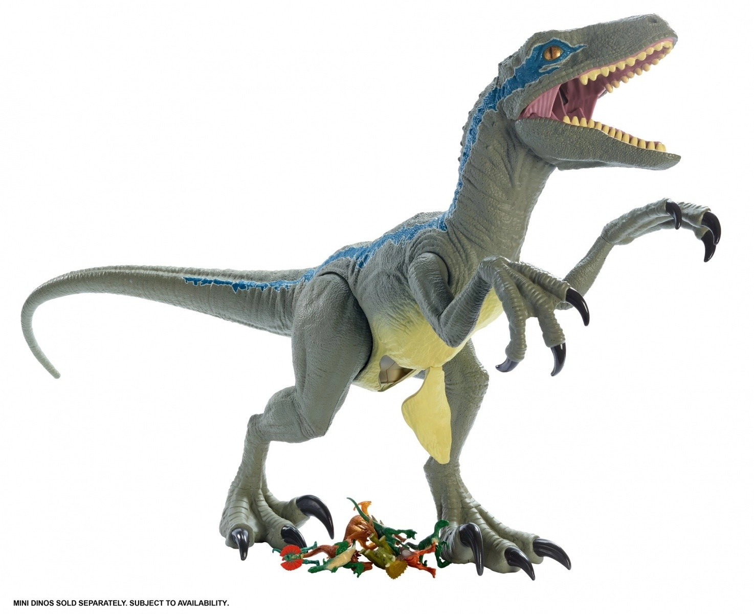 Tapkite JURASSIC WORLD pasaulio dalimi su milžiniško dydžio Blue figūrėle! Įspūdinga raptorės herojė yra maždaug 45 cm aukščio ir 106 cm ilgio, turi realistišką odos tekstūrą, ikonišką mėlyną juostą ir daugybę judančių sąnarių aktyviam žaidimui. Dėl atsidarančių žandikaulių ir sumaniai paslėptų durelių pilve Blue gali „praryti“ net 20 mini dinozaurų figūrėlių (parduodamos atskirai). Realistiškos detalės, didelė judesių amplitudė ir įtraukiamos žaidimo galimybės pradžiugins tiek mažus, tiek didelius dinozaurų gerbėjus.