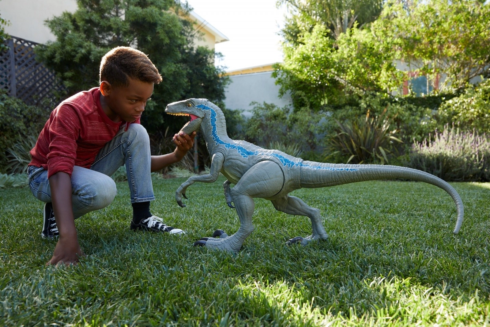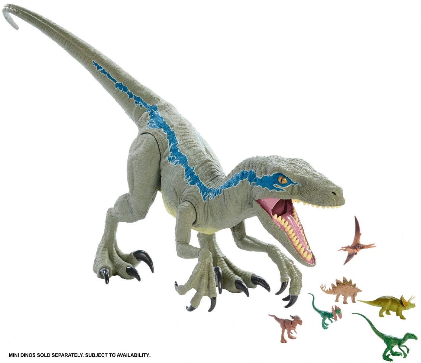 Milžiniška JURASSIC WORLD Blue figūrėlė atneša tikrą priešistorinį nuotykį į vaikų kambarį. Autentiškas dizainas su ryškia odos tekstūra, mėlyna juosta ir aštriais „nagais“ pabrėžia tikroviškumą. Atsidaranti žandikaulio dalis ir sąnariai priekinėse bei galinėse galūnėse leidžia dinamiškai pozuoti ir kurti dramatiškas scenas iš serijos.