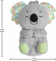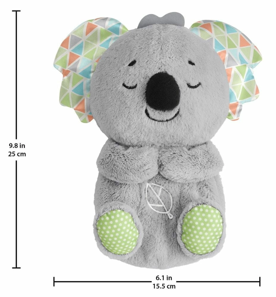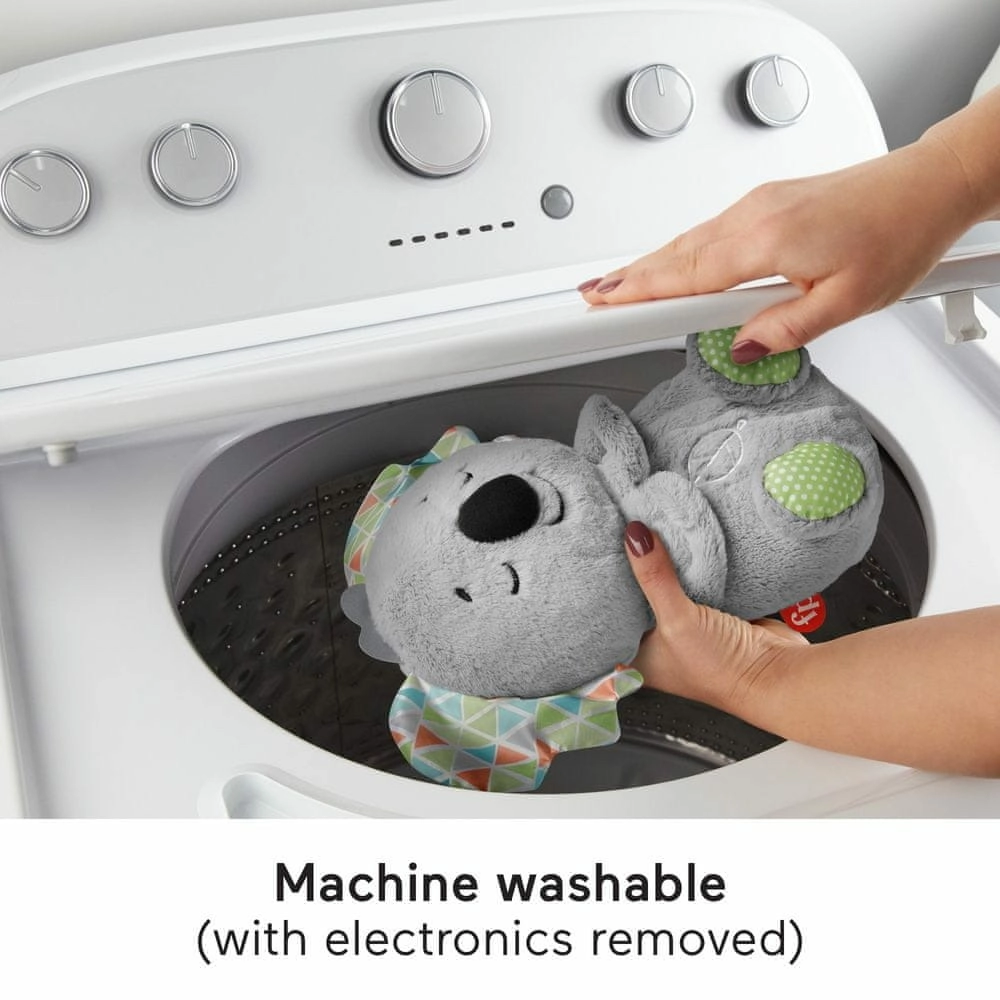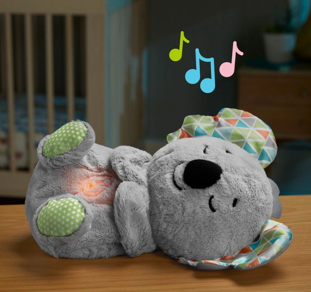 Mielas Fisher-Price pliušinis koala padeda kūdikiams užmigti dėl realistiško kvėpavimo ritmo, raminančios muzikos ir gamtos garsų bei švelnios daugiaspalvės šviesos pilvelyje. Minkštą žaislą lengva prižiūrėti – išėmus elektroniką jis yra skalbiamas skalbyklėje, o įvairios tekstūros jutimams lavinti sudomins mažas rankytes.