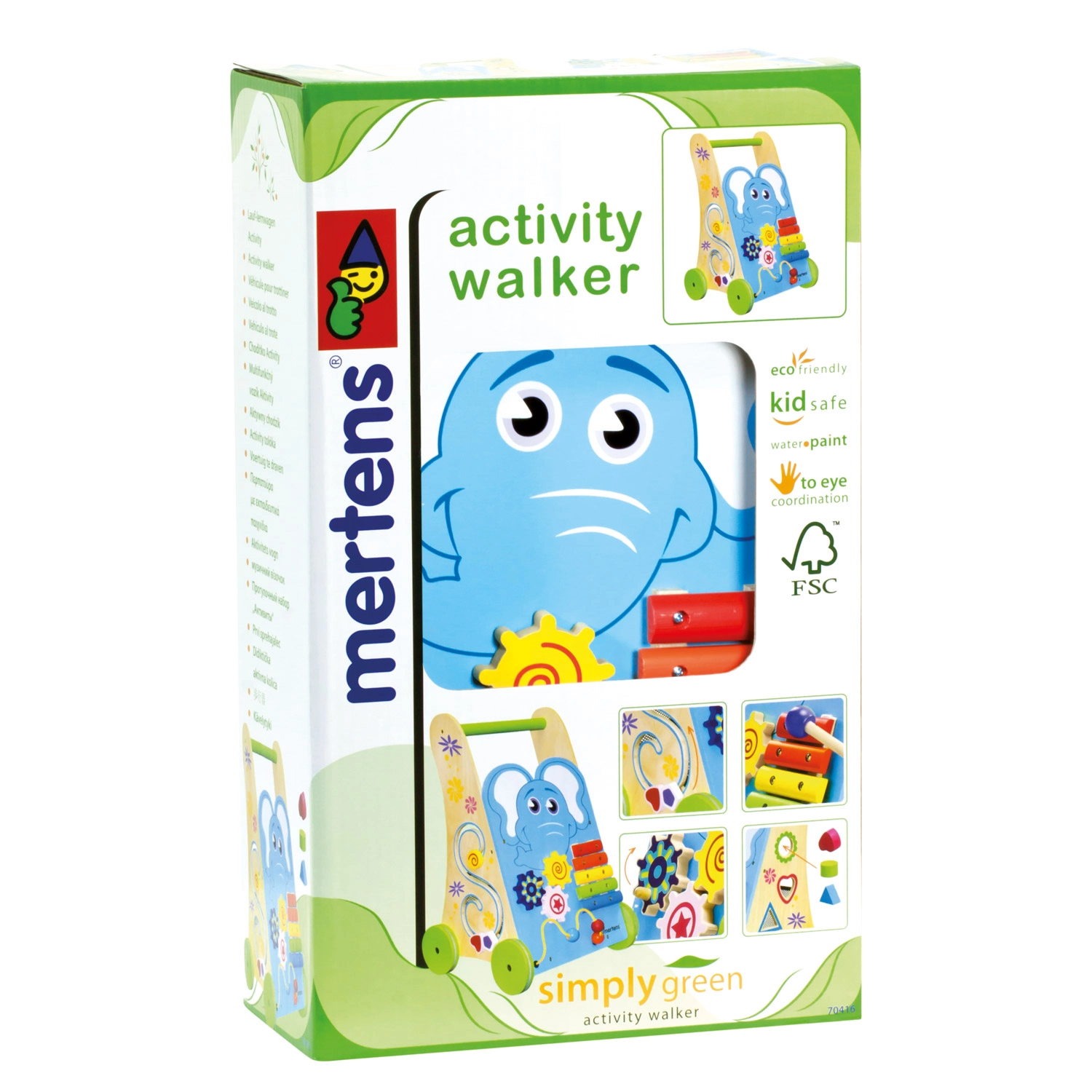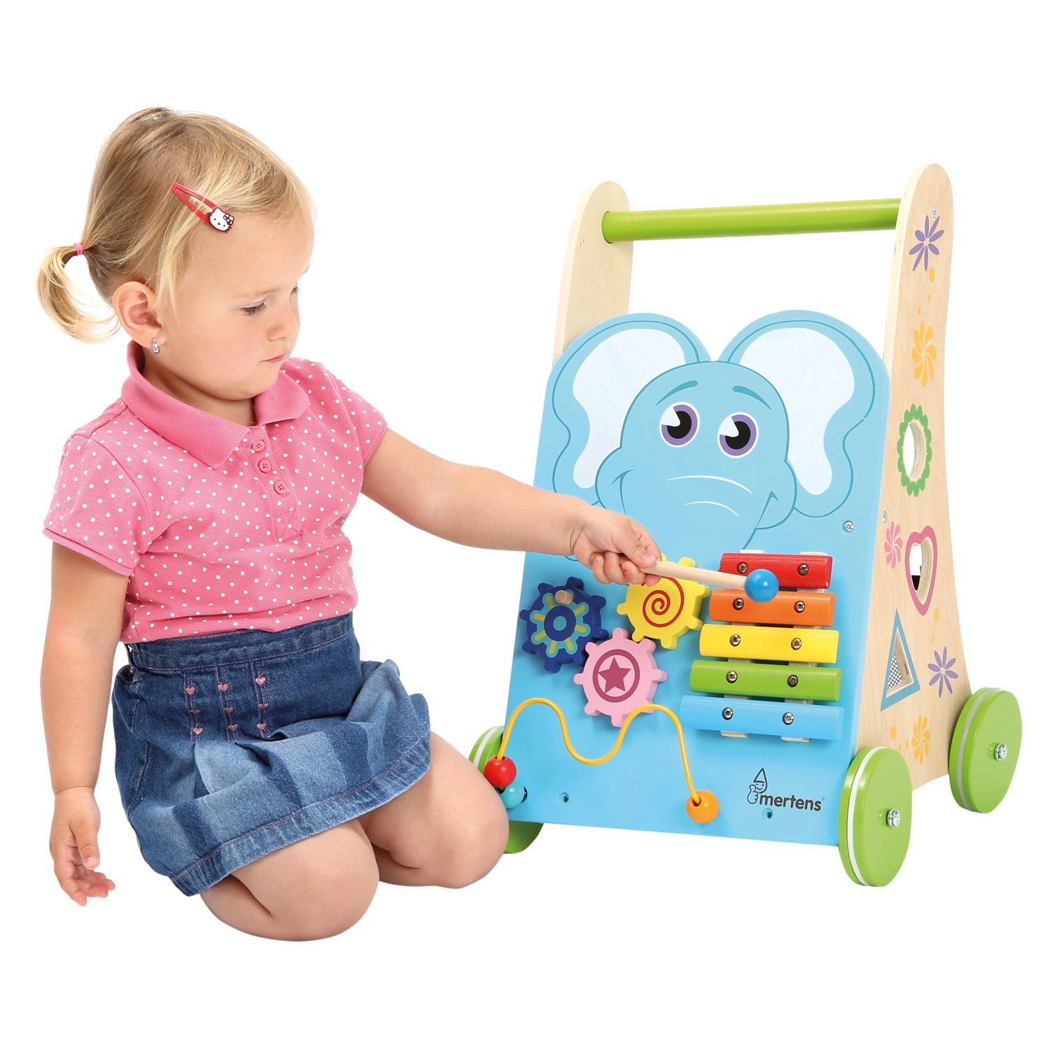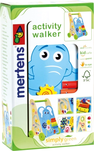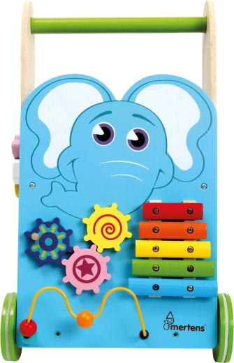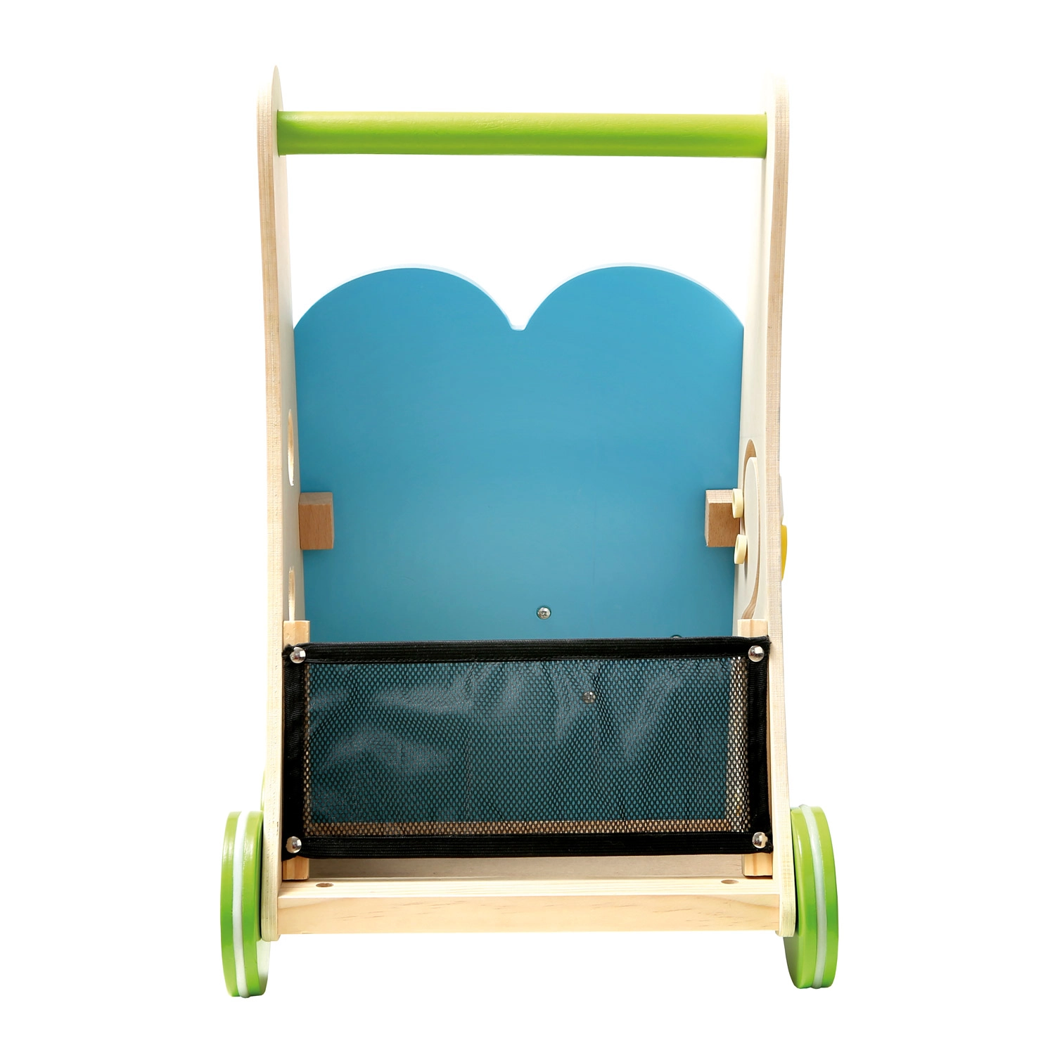 Ši daugiafunkcė medinė vaikštynė padeda vaikams treniruoti pusiausvyrą, koordinaciją ir smulkiąją motoriką. Priekinis skydelis pilnas veiklų: muzikinis ksilofonas su plaktuku, dantračių mechanizmai, karoliukų labirintas ir formelių rūšiuoklė, skatinantys susikaupimą ir loginį mąstymą.