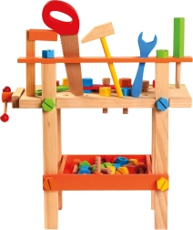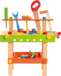 Šis vaikiškas darbo stalas puikiai tinka mažiesiems meistrams, mėgstantiems sukti varžtus, konstruoti ir taisyti. Dėl tvirtos konstrukcijos, perforuoto stalviršio ir praktiško spaustuvo vaikai išbandys realias situacijas ir žaisdami įgis pagrindinių įgūdžių.