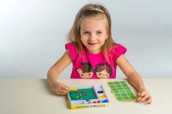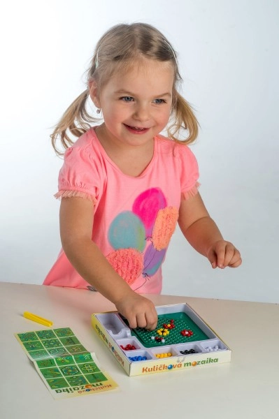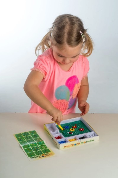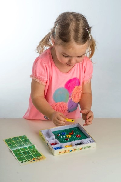 Ši mozaika – puikus pasirinkimas pirmajam kūrybiniam darbui. Vaikai pincetu įstato spalvotus rutuliukus į pagrindą ir kuria tiek paprastus, tiek sumanius motyvus. Veikla skatina kantrybę, akių–rankų koordinaciją ir smulkiosios motorikos vystymąsi.