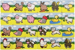Kiekviena kortelė turi aiškią, lengvai suprantamą iliustraciją (viščiukas, karvytė, paršelis, ežiukas, katytė, antis ir kiti), kuri skatina mokymąsi ir pramogą.
