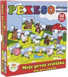 Medinis pexeso – Mano pirmieji gyvūnėliai TEDDIES yra gražiai iliustruotas atminties žaidimas vaikams. Iš kokybiško medžio pagamintos kortelės maloniai laikosi rankoje, yra patvarios, o ryškios spalvos ir mieli gyvūnėlių motyvai iškart patraukia vaikų dėmesį. Žaidimas moko atpažinti formas ir spalvas, lavina loginį mąstymą ir kantrybę.