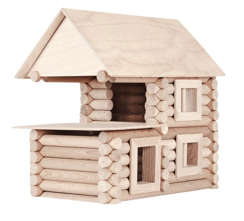 Statykite rąstinius namelius, mažus namukus ir paprastus tiltus. Lanksti sistema skatina fantaziją ir erdvinį suvokimą.