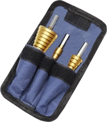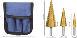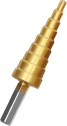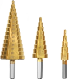 Laipsniniai grąžtai idealiai tinka greitam įvairių skersmenų skylių formavimui vienu įrankiu. Dėl daugybės laipsnių ant kiekvieno grąžto lengvai praplėsite skylę iki reikiamo dydžio nekeičiant įrankio. Titano danga mažina trintį, didina tarnavimo laiką ir gerina pjūvio kokybę.
