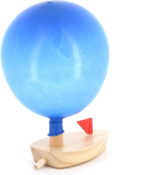 Atsineškite žaidimo džiaugsmą į namus su šiuo mediniu laiveliu su baliono varikliu. Vaikai gali lengvai pripūsti balioną, pritvirtinti jį prie laivelio ir stebėti, kaip šis plaukia į priekį. Šis paprastas, bet veiksmingas dizainas moko vaikus judėjimo principų ir kartu linksmina. Idealiai tinka pramogoms vonioje ar baseine.