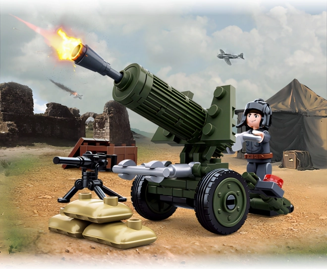 WWII 4-i-1 serijos mini konstruktorius pristato realistišką prieštankinio pabūklo modelį su priedais ir figūrėle. Užbaigus visą seriją iš atskirų rinkinių galima surinkti didelį vientisą artilerijos vilkiko modelį. Detalės pagamintos iš kokybiško, saugaus ir patvaraus ABS plastiko, kad žaidimas būtų saugus ir ilgaamžis.
