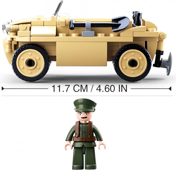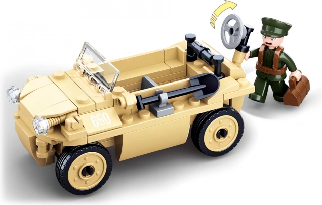 Pasinerkite į kūrybiško žaidimo pasaulį su šiuo detaliu Sluban konstruktoriaus rinkiniu, vaizduojančiu Antrojo pasaulinio karo vokiškų karinių transporto priemonių replikas. Rinkinyje yra 106 detalės ir originali figūrėlė su pasukamomis ir lankstomomis dalimis, leidžiančiomis žaisti su papildoma įranga.