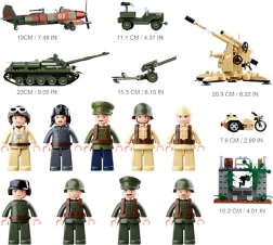 Pastatykite tanką, visureigį, lėktuvą, motociklą ir artilerijos pabūklus. Realistiškos detalės ir judančios dalys leis kurti įtemptus kovinius scenarijus.