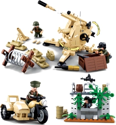 Sukonstruokite priešlėktuvinį pabūklą ir leiskitės į veiksmą ant motociklo su šonine priekaba. Idealiai tinka dinamiškoms scenoms ir komandinėms taktikoms.