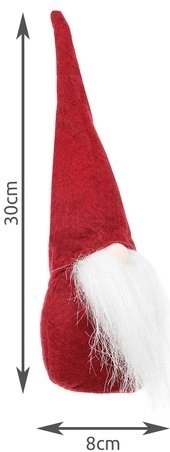 Mielas stovintis nykštukas su ilga balta barzda ir aukšta raudona kepure – ideali kalėdinė dekoracija kiekvieniems namams. Dėl stabilaus svarelio viduje tvirtai stovi vietoje, o kokybiškas veltinis ir plastikas užtikrina atsparumą pažeidimams. Puikiai tinka ant lentynos, komodos, stalo ar po eglute ir pradžiugins kaip universalus dovanos pasirinkimas tiek mažiems, tiek dideliems.
