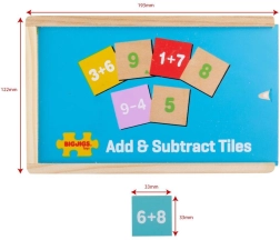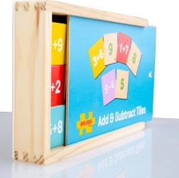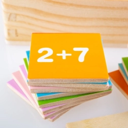 Medinė mokomoji rinkinio versija su 81 žaidimo plytele suteikia plačias galimybes lavinti sudėtį ir atimtį skaičių 1–9 ribose. Dėl kompaktiškos dėžutės puikiai tinka namuose, darželyje ir kelionėse. Vaikai žaisdami įtvirtina pagrindinius skaičiavimo įgūdžius ir kartu lavina akių-rankos koordinaciją.