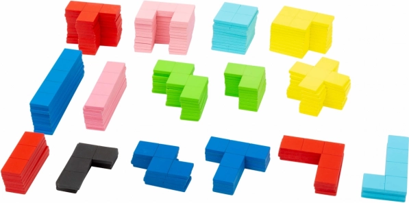 Didelis rinkinys su 13 formų ir 7 spalvomis kviečia kurti mozaikas, paveikslus ir raštus. Puikiai tinka kūrybiškam žaidimui ir mokymuisi.