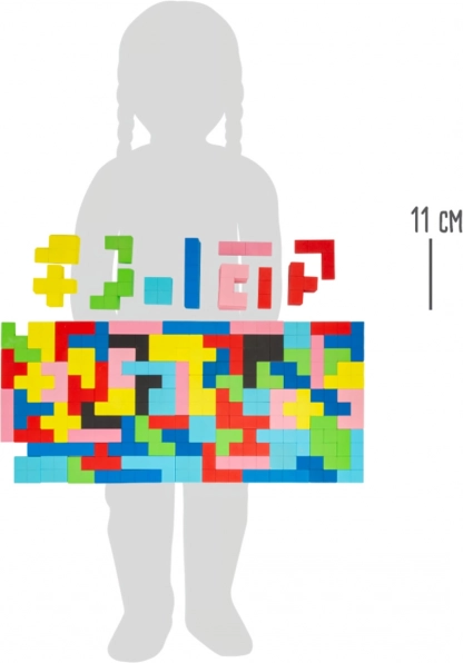 Ši universali medinė dėlionė siūlo begalines mozaikų ir figūrų kombinacijas. Vaikai ir suaugusieji lavina erdvinę vaizduotę ir kantrybę, žaisdami su 13 skirtingų formų 7 spalvose. Dalys puikiai dera ir dėl kokybiškos apdailos maloniai laikosi rankoje.