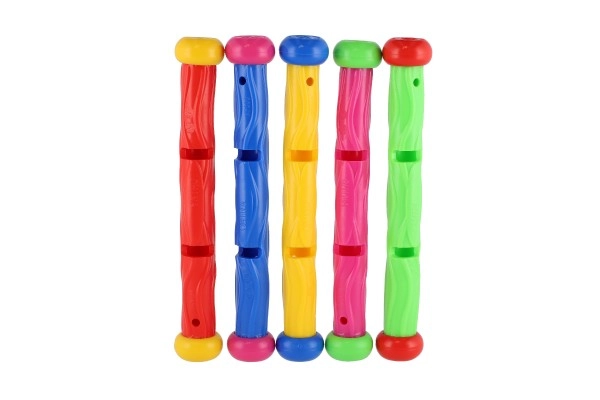Rinkinyje yra 5 patvarios lazdelės, kurių ilgis 30 cm, su guminiu korpusu ir plastikiniais galiukais. Idealu baseinui vaikams nuo 6 metų – nardymo, kvėpavimo sulaikymo ir pasitikėjimo vandenyje treniruotėms.