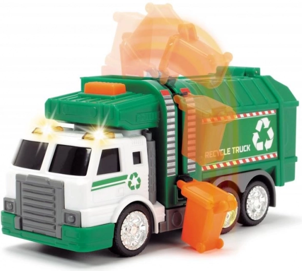 Paspaudus mygtuką įsijungia šviesos ir skamba autentiški šiukšliavežės garsai – puikus paskatinimas pojūčių lavinimui ir pramogai.
