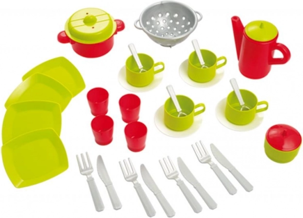 Praktiškas ir smagus vaikų arbatos servizo ir indų rinkinys, idealus žaidimams ir įgūdžių lavinimui. Rinkinyje yra pilna įranga, kurios jūsų vaikui reikia savo mažam vaišių stalui.