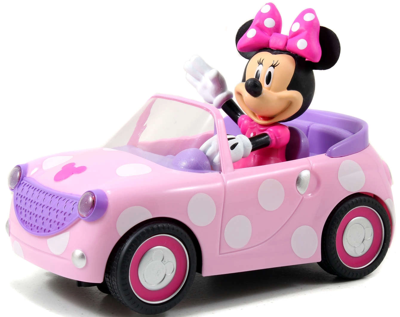 Su šiuo stilingu nuotoliniu būdu valdomu kabrioletu iš Jada, sukurtu pagal Disney MINNIE MOUSE temą, vaikai leisis į smagias keliones namuose ir išvykose. Automobilis išsiskiria ryškiu rožiniu dizainu su taškeliais, detaliu interjeru ir tvirtai pritvirtinta Minnie figūrėle su ikonišku kaspinu.