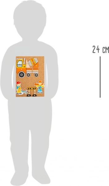 Kamštinė lenta su smeigtukais leidžia pakartotinai dėlioti ir pertvarkyti transporto bei statybos scenas pagal vaikų fantaziją.