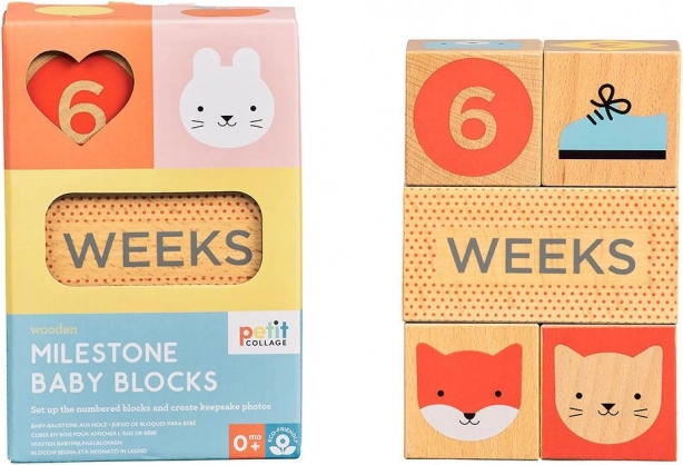 Stilingi etapų kubeliai iš Petit Collage padės įamžinti svarbiausias jūsų kūdikio ir nėštumo akimirkas. Rinkinys iš FSC sertifikuotos buko medienos siūlo spalvotus atspaudus, skaičius ir simbolius, kad sukurtumėte originalias ir aiškias nuotraukas. Idealu gimimui, pirmiesiems mėnesiams ir metams bei nėštumo fotosesijoms.