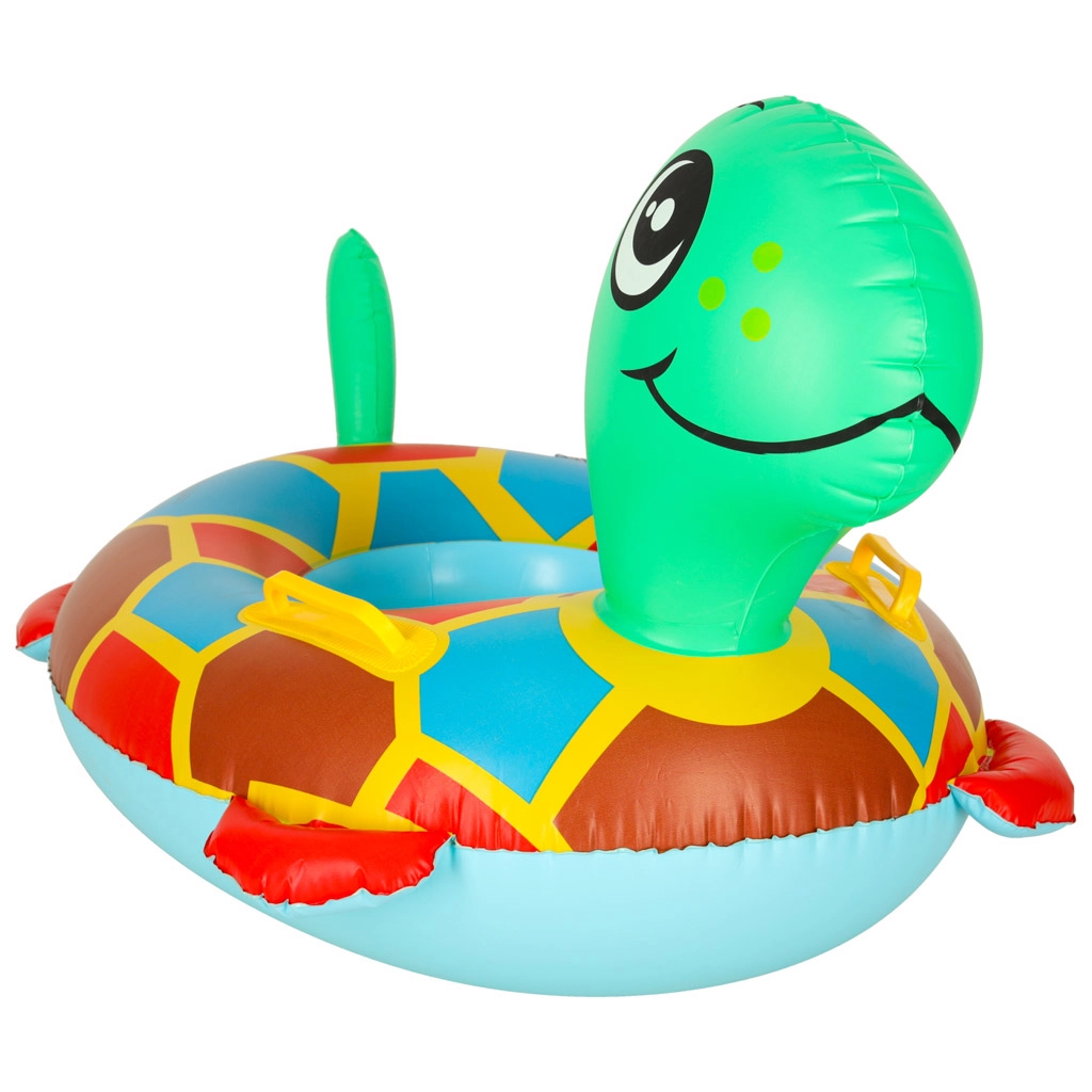 Pripučiama vėžlio sėdynė – puikus pagalbininkas pirmiesiems vandens džiaugsmams. Dvi kojų angos užtikrina stabilų sėdėjimą, o spalvingas dizainas ir besišypsanti vėžlio galva kviečia žaisti. Patvarus PVC garantuoja ilgaamžiškumą ir lengvą priežiūrą.