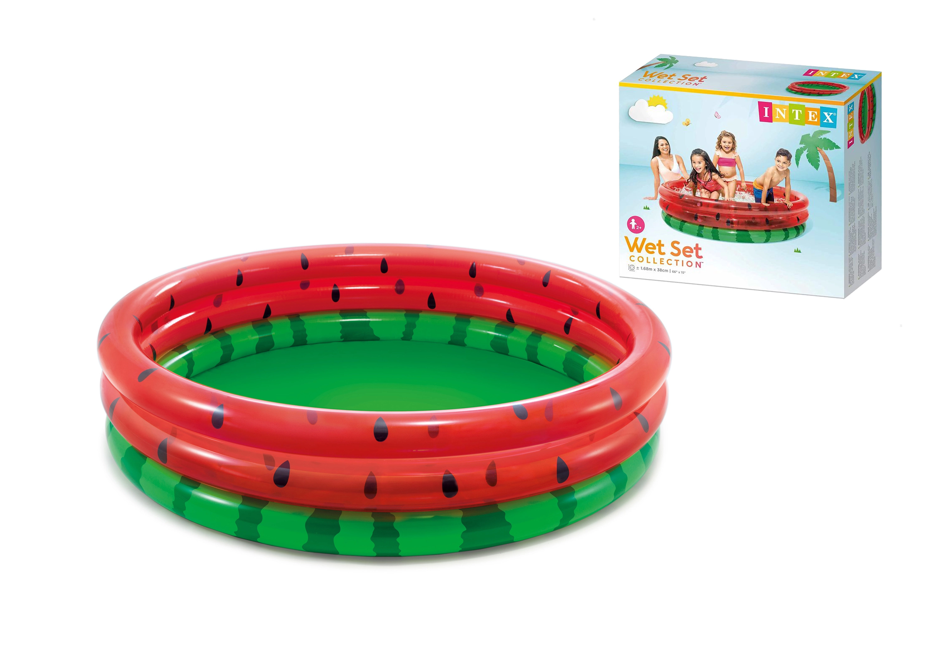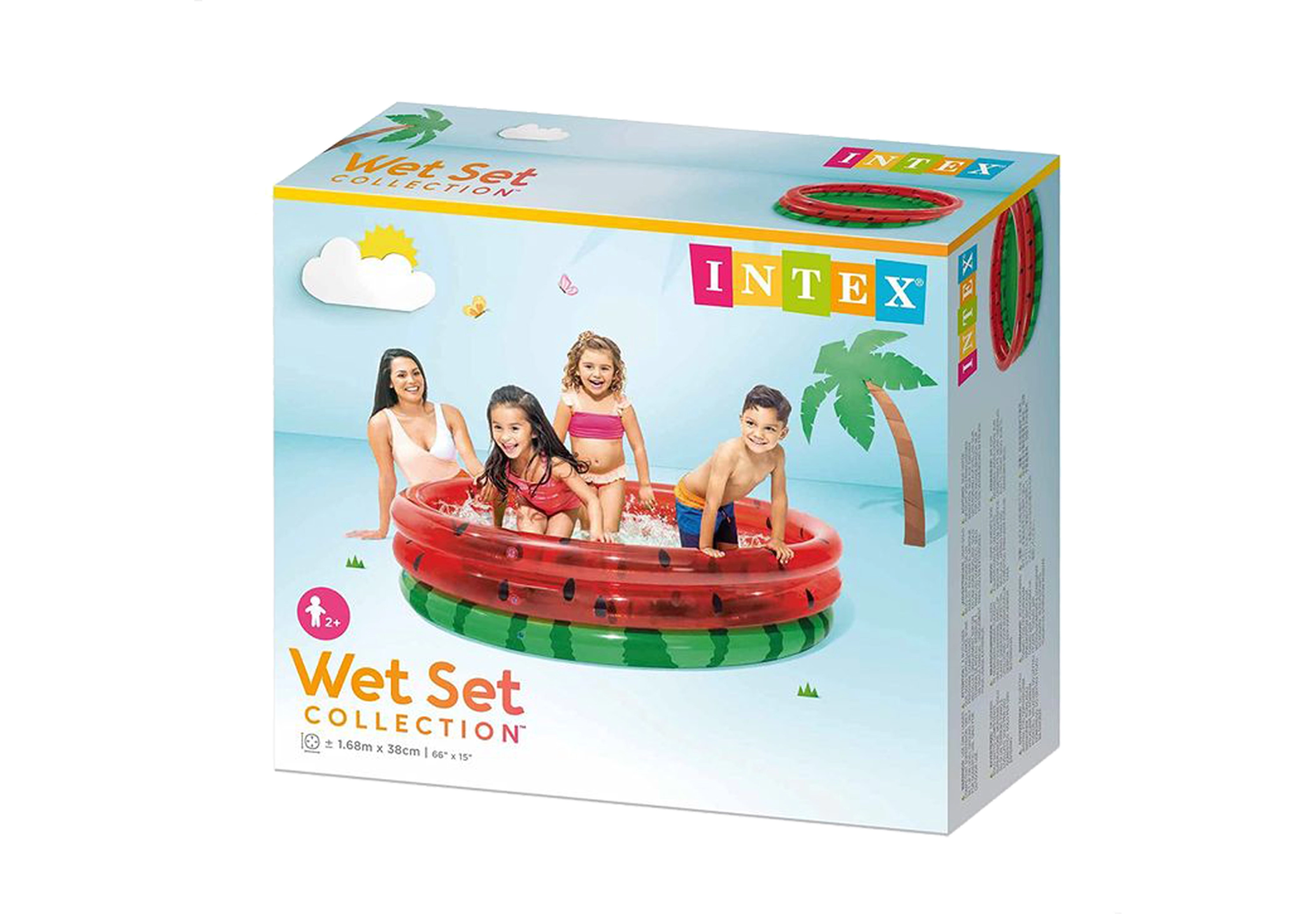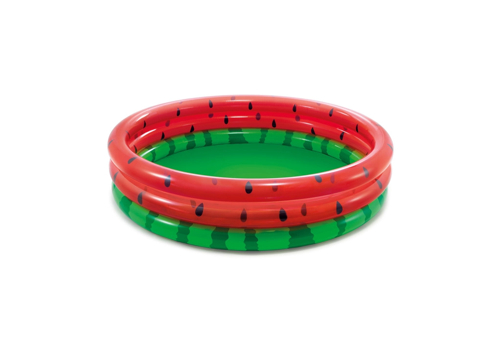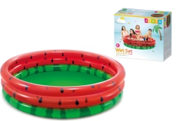 Mėgaukitės vasara su stilingu Intex pripučiamu baseinu, primenančiu arbūzą. Dėl 168 cm skersmens ir 38 cm aukščio jis siūlo erdvų atsivėsinimą vaikams ir suaugusiems, lengvą pripūtimą ir stabilią konstrukciją iš patvaraus vinilo. Talpa 581 l esant 29 cm vandens lygiui užtikrins daugybę vandens pramogų sode.