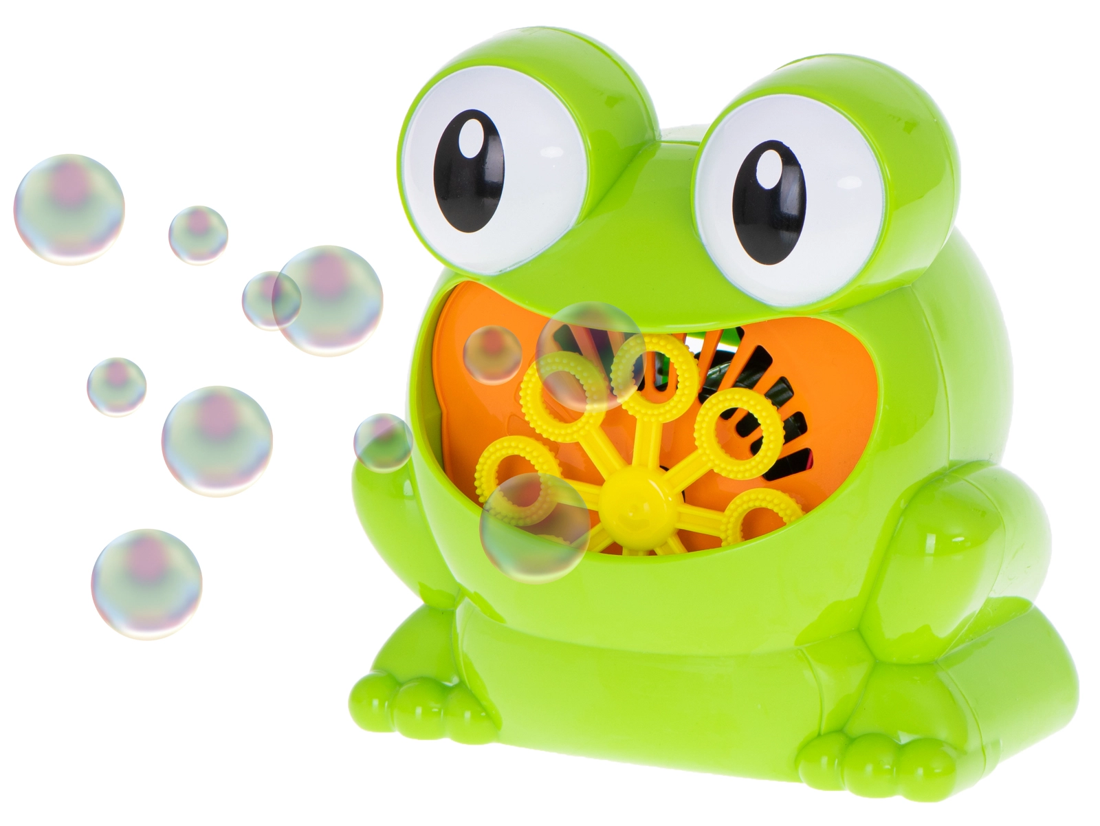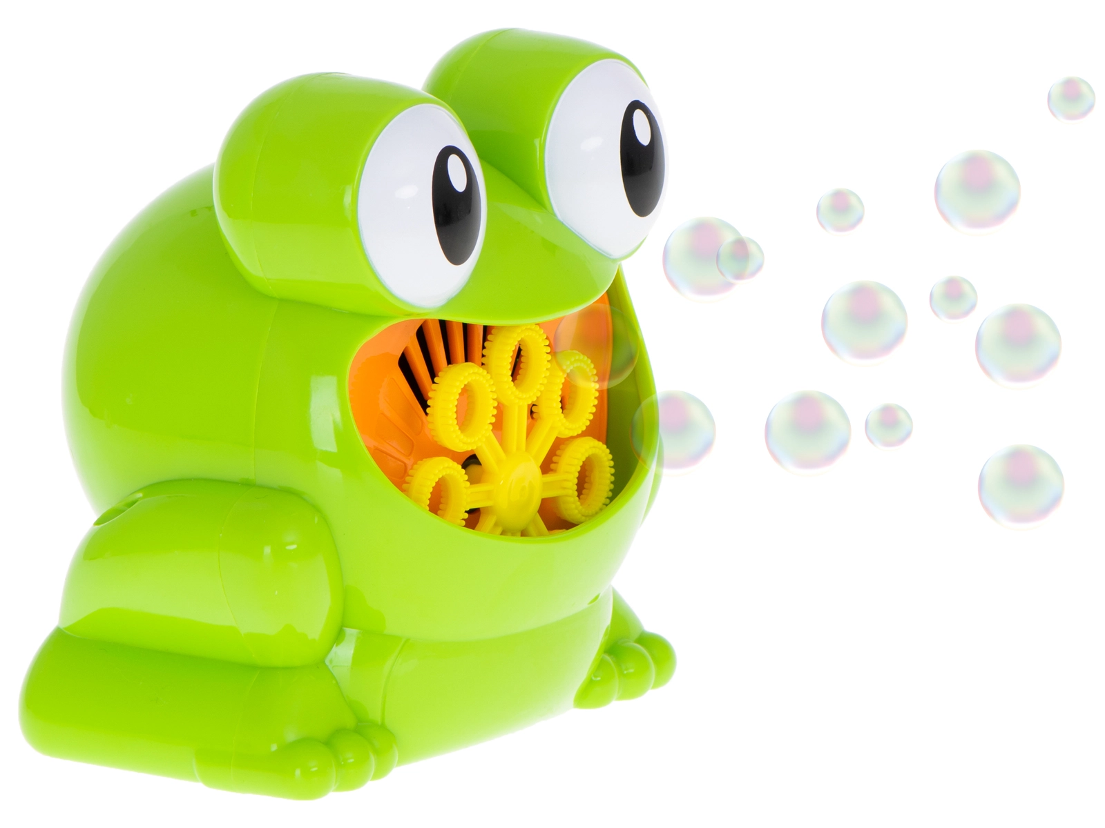 Įpylus tirpalo ir paspaudus mygtuką, varlytė iškart paleidžia spalvotų burbuliukų srautą – idealiai tinka kasdieniams žaidimams ir šventėms.
