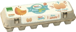 Garsinis atminties žaidimas kiaušinio formos, klasikiniame kartoniniame dėkle, yra idealiai tinkamas vaikų sensoriniams gebėjimams lavinti. Žaislas lavina atmintį, nes vaikai ieško porų kiaušinių su tokiu pačiu garsu.