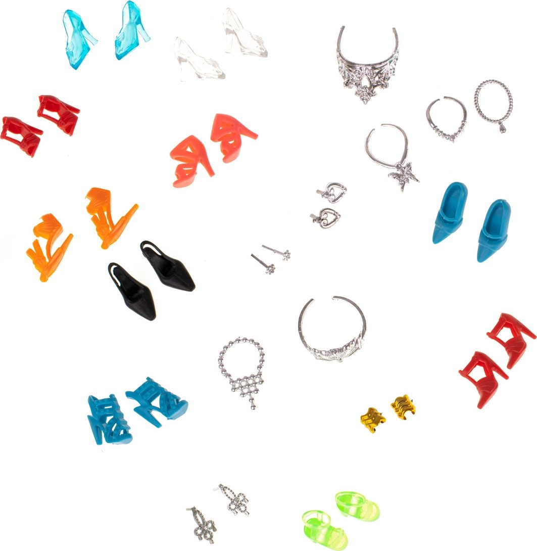 Ne tik suknelės, bet ir aksesuarai, tokie kaip batai ir papuošalai, leidžiantys sukurti įvairias lėlių išvaizdas.