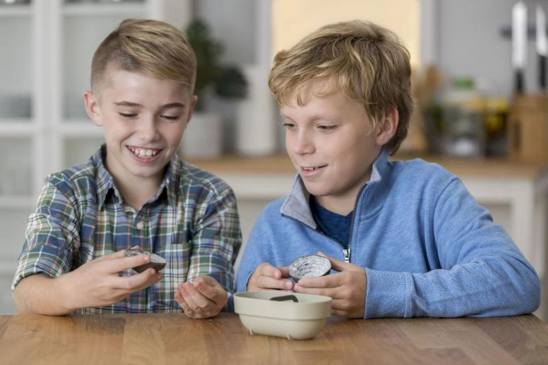 Šis eksperimentinis rinkinys leis saugiai ir aiškiai užsiauginti savo kristalinį geodą. Gamtoje kristalai formuojasi tūkstančius metų – su MAC TOYS rinkiniu jų augimą pamatysite per kelias dienas. Procesas paprastas ir kartu žavintis: ištirpinate mišinį, užpildote formą, paliekate kristalizuotis ir stebite, kaip gimsta spindinti struktūra.