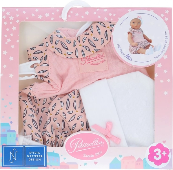 Mia drabužėlis lėlėms iš Petitcollin įkūnija prancūzišką eleganciją ir unikalius raštus. Šis rinkinys idealiai tinka 35 cm aukščio lėlėms ir apima kombinezoną, kepurėlę ir kojinytes.