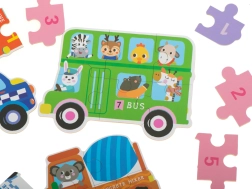 Transporto priemonės su spalvingais gyvūnų personažais pagyvins kiekvieną dėlionę ir patrauks jūsų vaiko dėmesį.