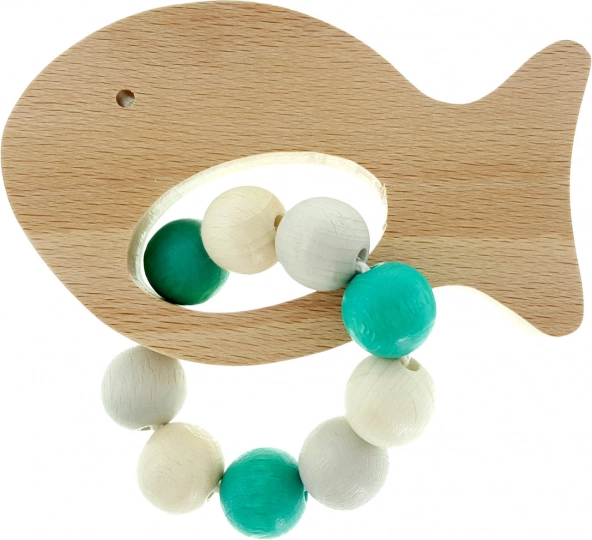 Turkio spalvos žuvytės formos barškutis siūlo žaismingą būdą lavinti jūsų vaiko motorinius įgūdžius. Pagamintas iš etiškai gautos medienos iš ekologiškai tvarių miškų, šis produktas yra ypač saugus ir patvarus.