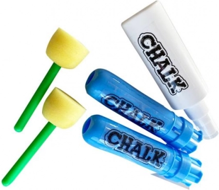 Rinkinyje yra 10 kreidų, 2 laikikliai, raidžių šablonai, 2 kempinėlės ir vandens purkštuvas. Viskas, ko reikia linksmam ir kūrybingam piešimui.
