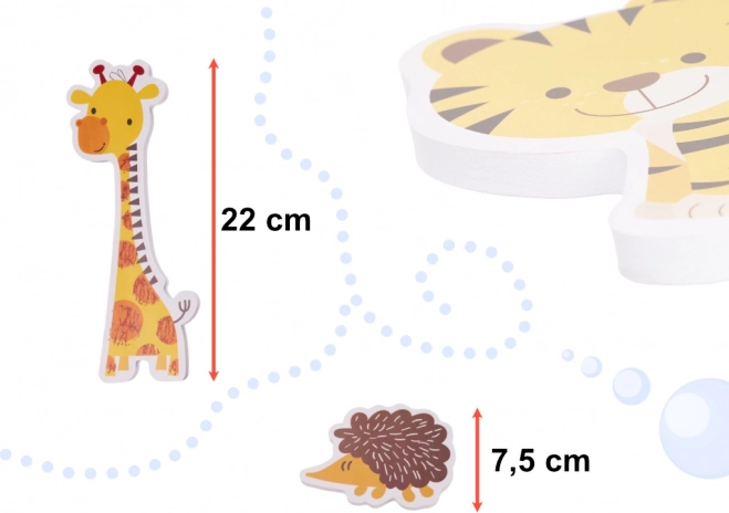 Linksmi motyvai, tokie kaip žirafa, tigras, beždžionėlė ar ežiukas, patrauks vaikus ryškiomis spalvomis ir skatins kūrybišką dėliojimą bei istorijas.