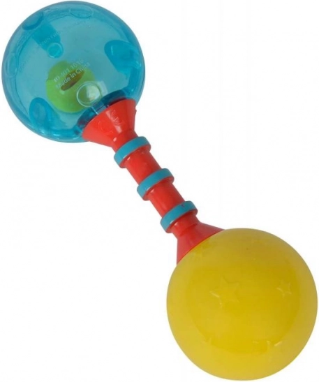 Šis barškutis skatina vaiko jutiminį vystymąsi dėl ryškių spalvų ir garsų, kuriuos skleidžia purtant.