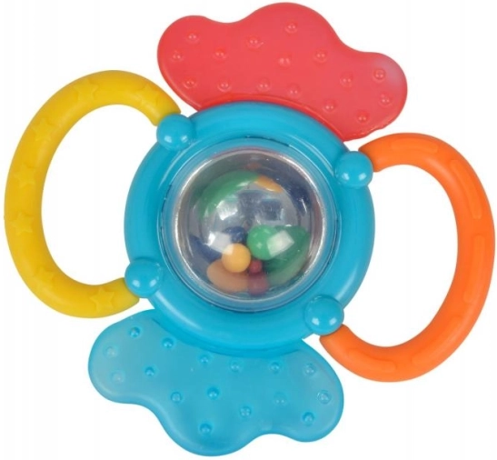 Kombinuotas barškutis ir kramtukas viename, idealus vaikams nuo 3 mėnesių amžiaus. Suteikia pramogą ir skatina vaiko jutimų raidą.