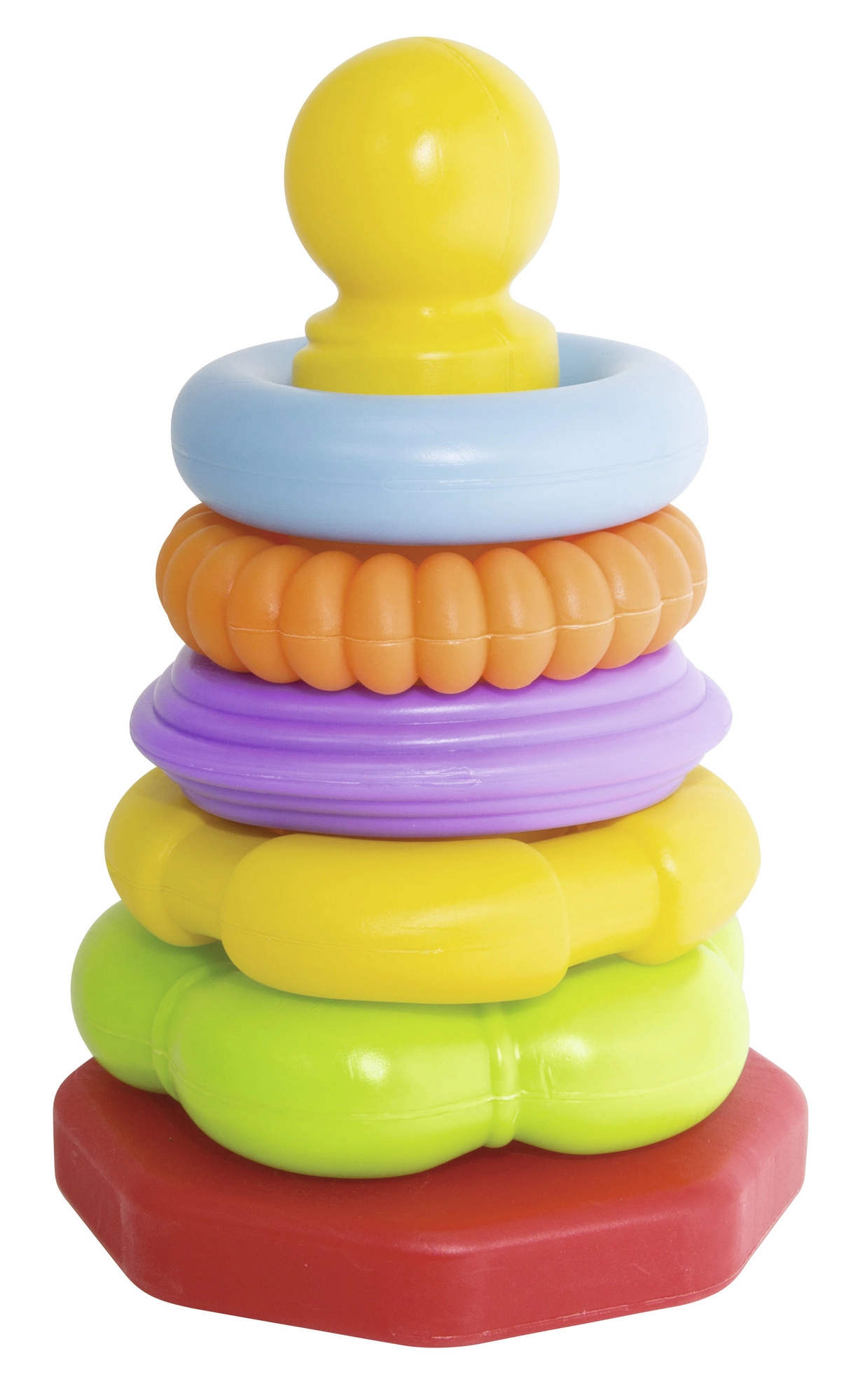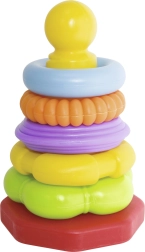 Piramidė su spalvotais žiedais – ideali priemonė vaikų motorikai ir derinimo įgūdžiams lavinti. Sudėtyje yra penki skirtingų spalvų ir formų žiedai.