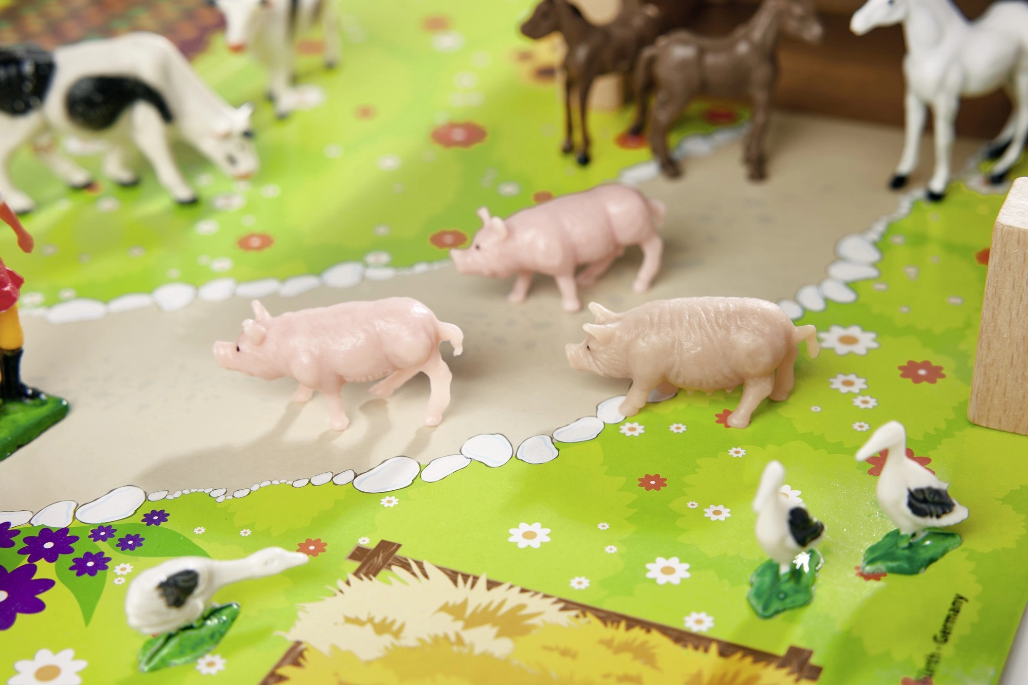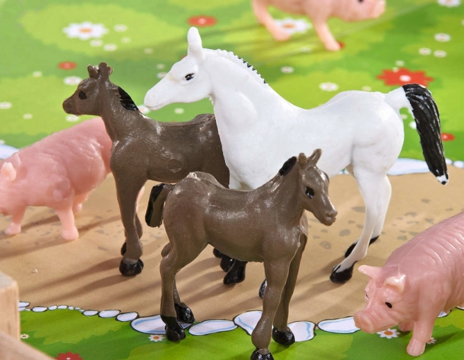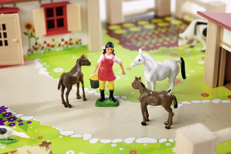 Arkliai, karvės, paršeliukai, žąsys ir prižiūrėtoja skatina fantaziją, moko vaikus atpažinti gyvūnų rūšis ir ugdo socialinius įgūdžius per vaidmenų žaidimus.