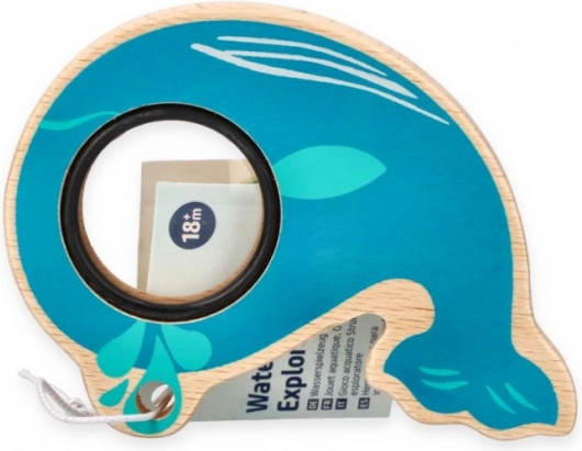 Turkio spalvos banginis iš medžio ir plastiko puikiai telpa į mažą vaiko delną. Jis padeda lavinti suėmimą, akių–rankų koordinaciją ir pirmuosius daiktų manipuliavimo įgūdžius žaismingu būdu.