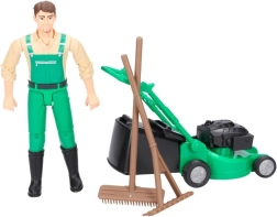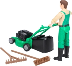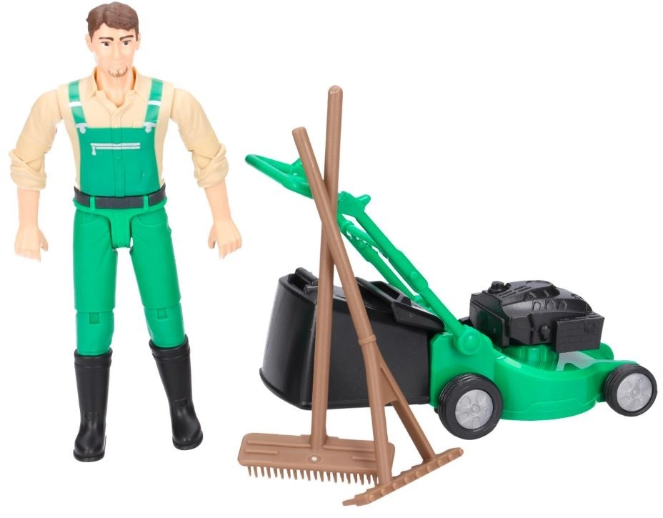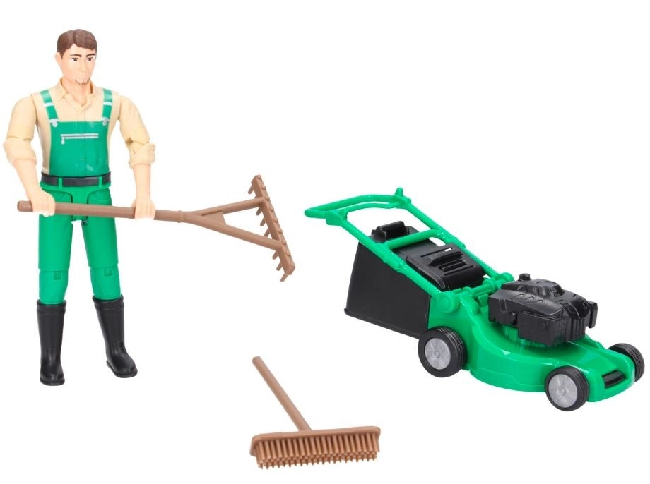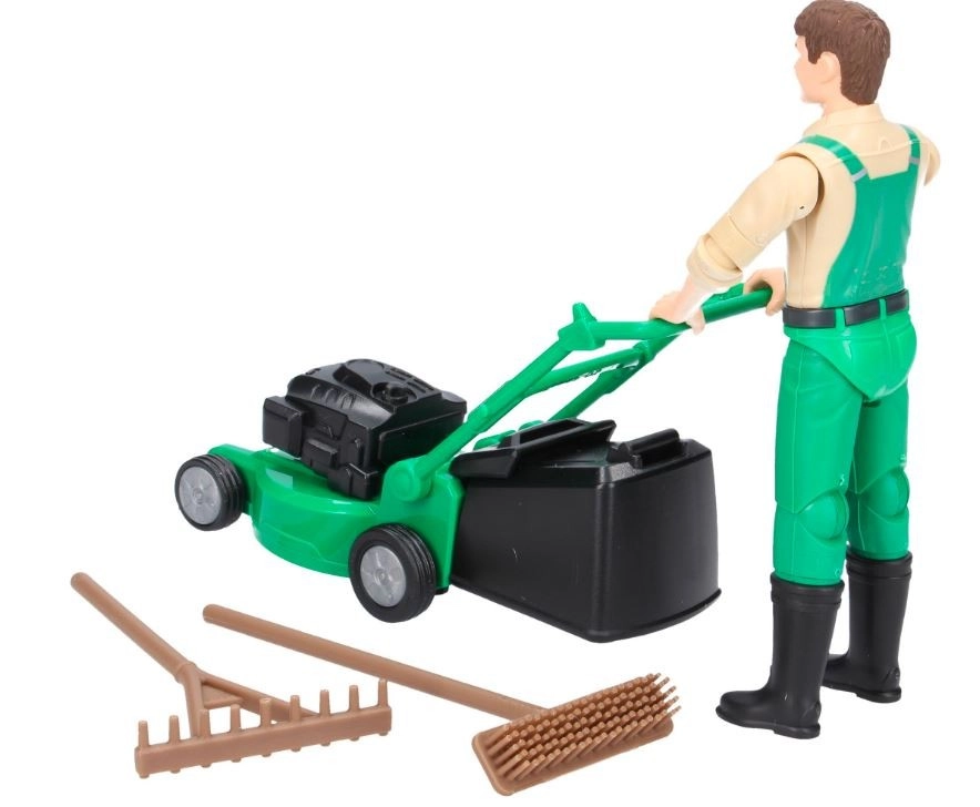 BRUDER BWORLD sodininko rinkinys su vejapjove suteikia vaikams realistišką vejos priežiūros žaidimą. Figūrėlė turi lanksčias galūnes ir rankas, pritaikytas tvirtam įrankių suėmimui, todėl gali lengvai stumti vejapjovę, grėbti ar šluoti.